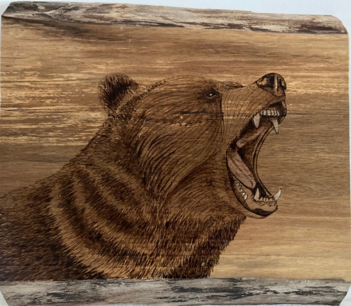 What he most enjoys about wood burning is the ability to use drawing skills to create pieces of sentimental or personal significance. Whatever the subject matter, he always tries to evoke a connection or special meaning for the viewer.